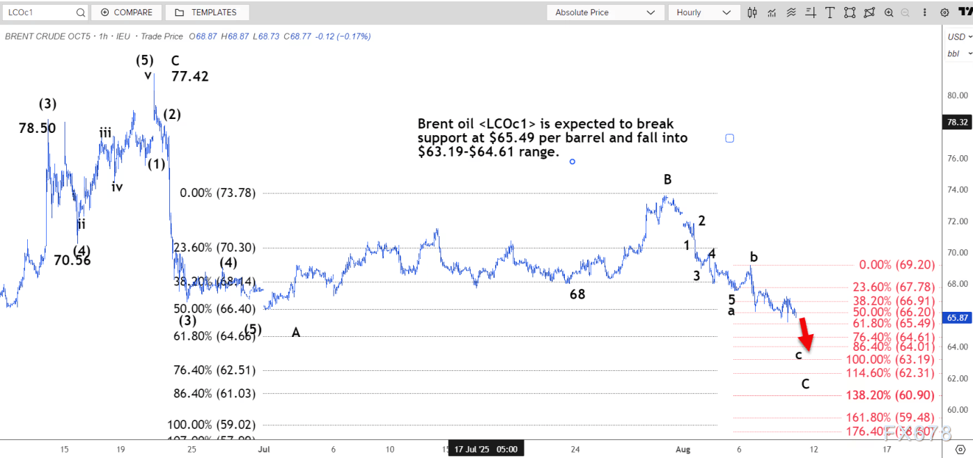 路透技术分析师预计,布伦特原油将跌破每桶 65.49 美元的支撑位,跌至 63.19 美元至 64.61 美元的区间。