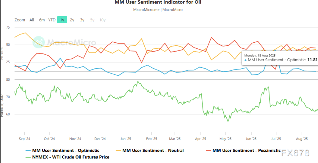 周四美原油10月期货小幅上涨,周三因供应中断担忧涨1.7%。乌克兰局势扰动原油供应,俄乌和谈停滞增加俄受制裁风险。投资者信心偏谨慎,MM情绪指标显示悲观者略多,中立情绪上升。技术面呈横盘整理,RSI和MACD显中性,关注63美元的近期高点,短期或维持震荡待催化剂。